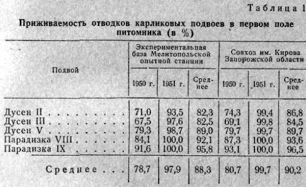 Важнейшими из них являются следующие: приживаемость карликовых