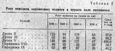 подвоев в питомнике, их рост; окулировка карликовых подвоев и