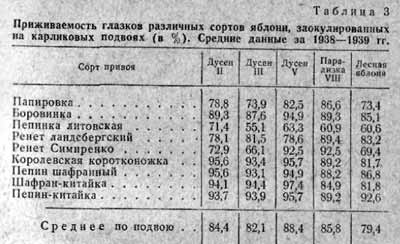 дусену IV 97%, парадизке IX- 99,4%. Сеянцы лесной яблони дали 94%