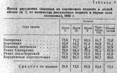 подвоев: на лесной яблоне 71,1%, на дусене II 77,6%, на дусене III