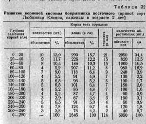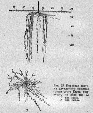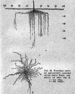 длина их - 1666 см. У сорта Кюре эти корни залетают неглубоко (0-100