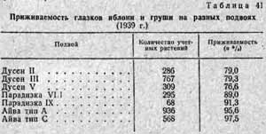 приживаемости глазков для большинства сортов высокий (табл. 41).