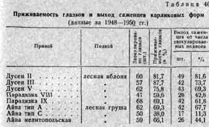 Из данных таблицы 46 видно, что приживаемость глазков в зависимости