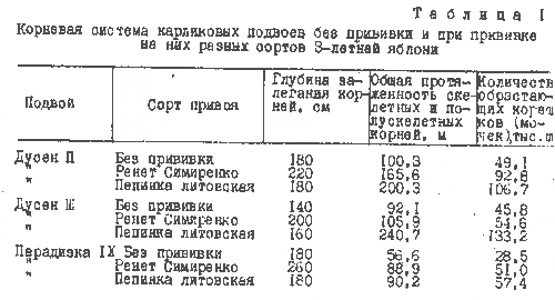 вегетативно размножаемых подвоев яблони проникали в почвогрунт