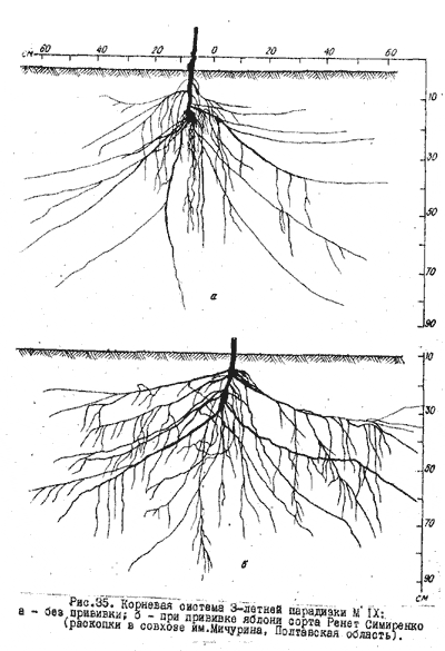 (сорт Кальвиль снежный). При этом основная масса корней