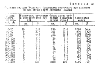 корневую систему 3-летних деревьев сорта Любимица Клаппа, привитого