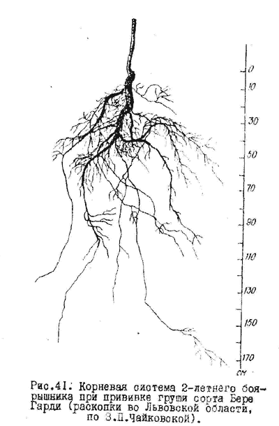 З.П.Чайковская (1969) производила раскопки корневой системы 2-летних