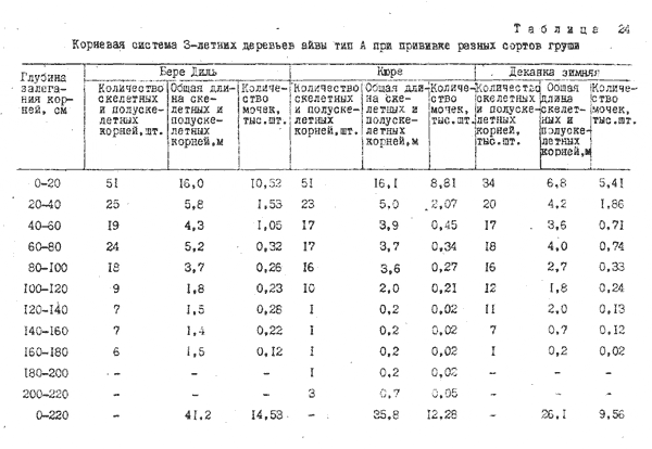 У сорта Кюре корни проникали наиболее глубоко - до 220, у сортов,