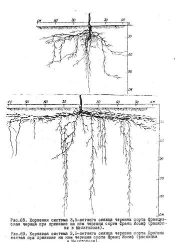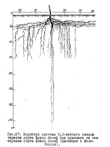 их залегает до глубины 140 см. По сравнению с корнями вишни это
