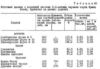 Иосиф на сеянцах черешни имели следующие размеры по сортам подвоя: