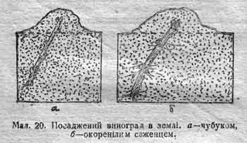 Саджання винограду провадять весною окоренілими саженцями, або