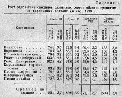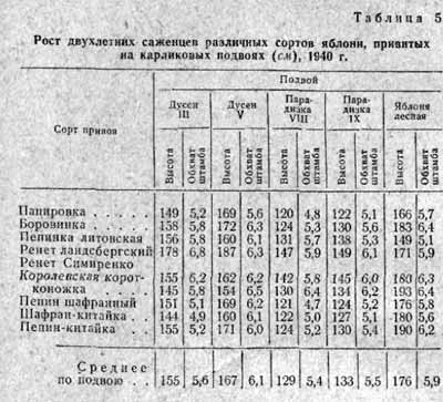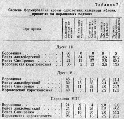 привитых на разных формах карликовых и полукарликовых подвоев (табл.