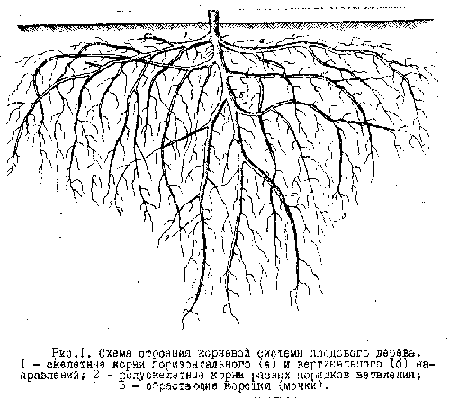 Рис.1. Схема строения корневой системы плодового дерева. 1 -