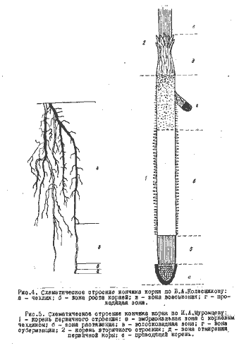 подразделения корня. Так, по И.Г.Сербрякову (по Колесникову, 1972)