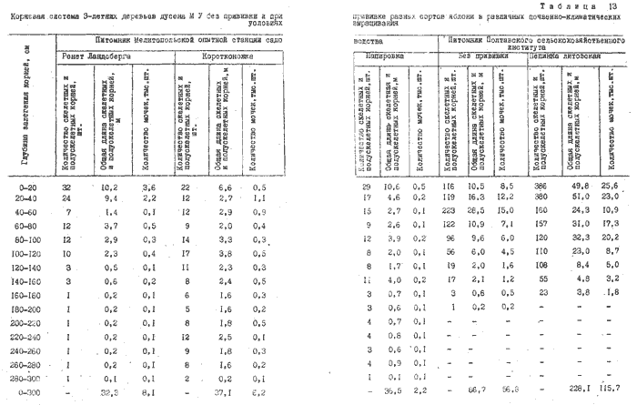почвы 5-80, сорта Ренет шампанский - 5-60 см. В опытах А.Ф.Марголина