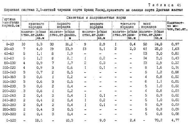 их залегает до глубины 140 см. По сравнению с корнями вишни это